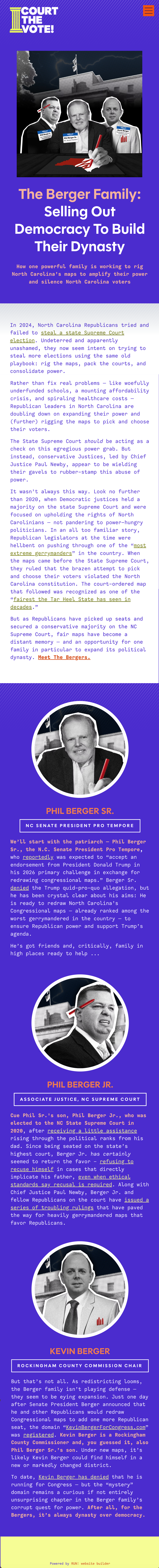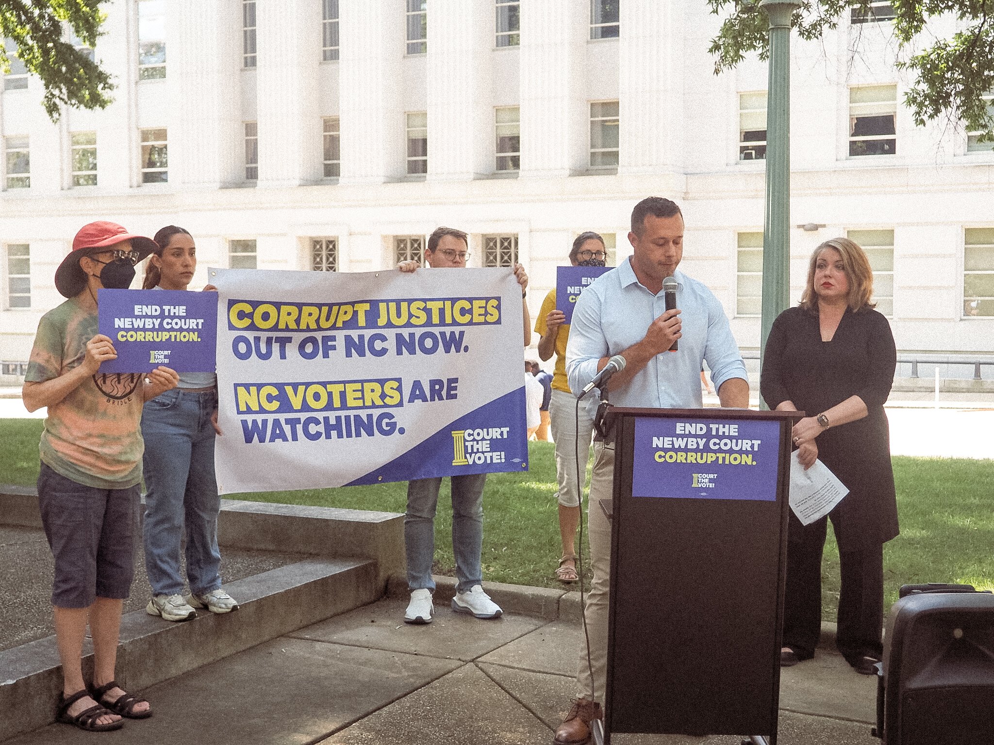 After the Wisconsin victory, the campaign shifted focus to North Carolina where the concerns centered around ending corruption in the NC court system, namely the Supreme Court attacking voting rights, overturning fair maps, and blocking duly-elected justices.